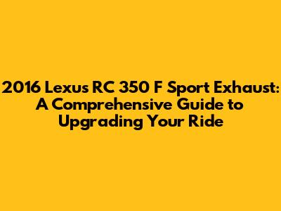 Upgrading the exhaust system on your 2016 Lexus RC 350 F Sport is a fantastic way to enhance its performance, sound, and appearance. By understanding the different types of exhaust systems, the factors to consider, and the installation process, you can make an informed decision and choose the perfect exhaust for your needs. Always prioritize safety and consider your mechanical abilities when choosing whether to DIY or seek professional installation. Regular maintenance will help ensure your new exhaust system stays in top condition for years to come. So, go ahead and give your RC 350 F Sport the upgrade it deserves! Enjoy the enhanced driving experience and the head-turning sound of your upgraded exhaust system. Happy driving! I hope you have found this guide helpful and informative. Safe travels! Let me know if you have any questions.