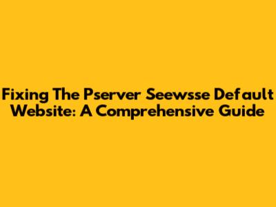 Fixing The Pserver Seewsse Default Website: A Comprehensive Guide