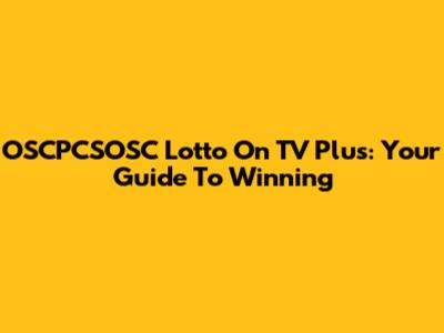 OSCPCSOSC Lotto On TV Plus: Your Guide To Winning