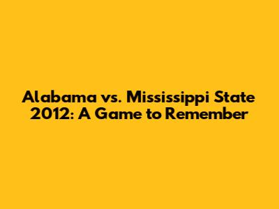 Hey sports fans, let's rewind the clock and dive into a classic college football showdown: the 2012 clash between the Alabama Crimson Tide and the Mississippi State Bulldogs! This game wasn't just another matchup; it was a gritty, hard-fought battle that had fans on the edge of their seats. The atmosphere was electric, the stakes were high, and the plays were unforgettable. So, grab your game-day snacks, settle in, and let's relive this epic encounter. We'll break down the key moments, the star players, and the overall impact of this thrilling contest. It’s a trip down memory lane that any college football enthusiast will enjoy. Get ready for some intense gridiron action!