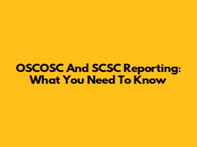 OSCOSC And SCSC Reporting: What You Need To Know