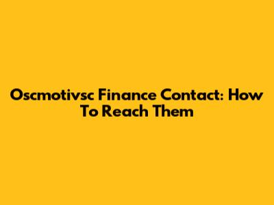 Oscmotivsc Finance Contact: How To Reach Them