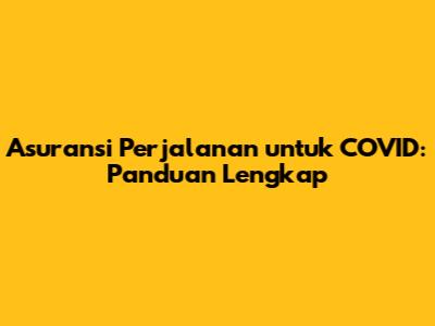 Asuransi Perjalanan Untuk COVID: Panduan Lengkap