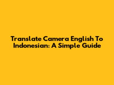 Translate Camera English To Indonesian: A Simple Guide