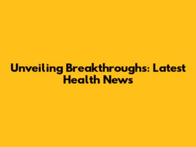 Unveiling Breakthroughs: Latest Health News