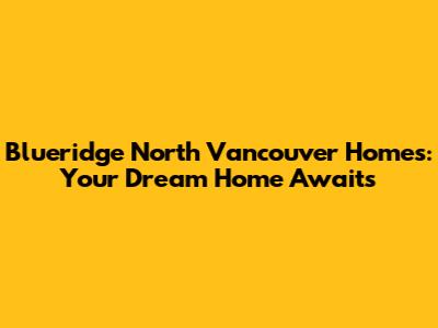 Blueridge North Vancouver Homes: Your Dream Home Awaits