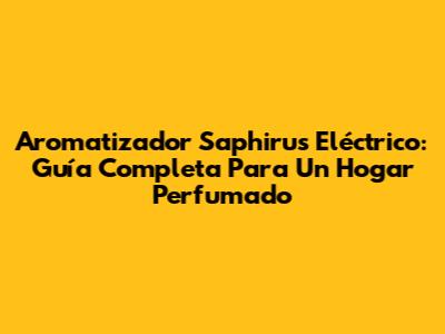 Aromatizador Saphirus Eléctrico: Guía Completa Para Un Hogar Perfumado