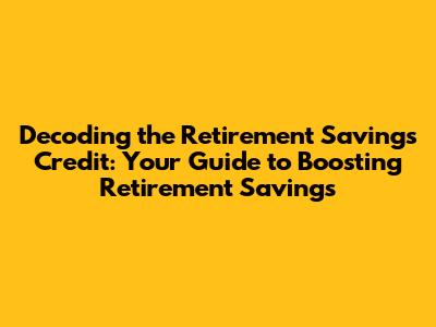 Hey there, future retirees! Let's dive into something super important: understanding the retirement savings credit. This often-overlooked tax break can seriously boost your retirement savings, and it's something everyone should know about. Think of it as free money from the government, specifically designed to help folks with modest incomes save more effectively for their golden years. In this article, we'll break down the retirement savings credit meaning, eligibility, and how to snag this sweet deal. So, grab a coffee, settle in, and let's get you on the path to a financially secure retirement, guys!
