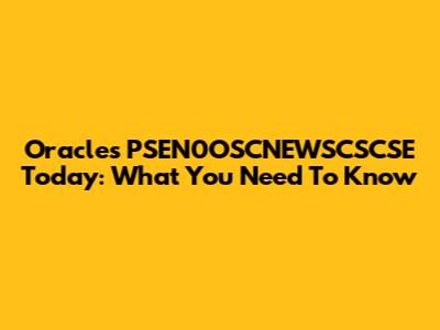 Oracle's PSEN0OSCNEWSCSCSE Today: What You Need To Know