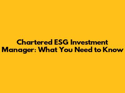 What is a Chartered ESG Investment Manager?