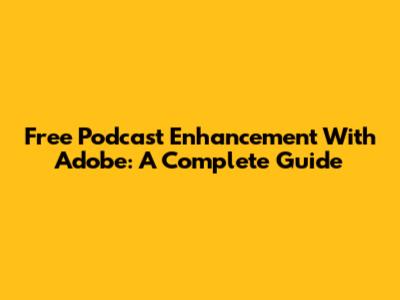 Free Podcast Enhancement With Adobe: A Complete Guide