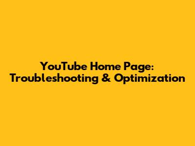 YouTube Home Page: Troubleshooting & Optimization