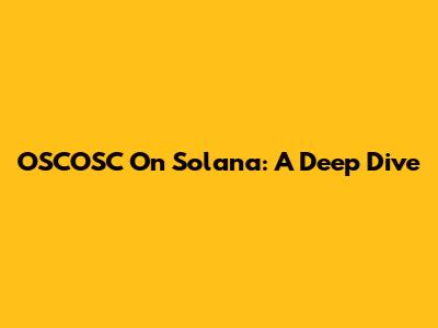 OSCOSC On Solana: A Deep Dive