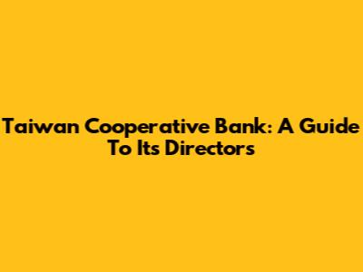 Taiwan Cooperative Bank: A Guide To Its Directors