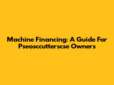 Machine Financing: A Guide For Pseosccutterscse Owners