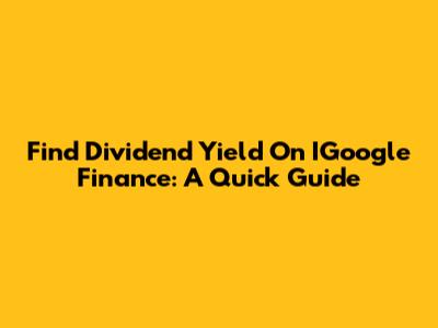 Find Dividend Yield On IGoogle Finance: A Quick Guide