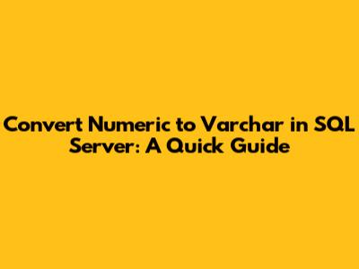 Hey guys! Ever found yourself needing to convert a numeric value to a varchar in SQL Server? It's a pretty common task, especially when you're dealing with reporting, data integration, or just trying to display numbers in a more human-readable format. In this article, we're going to dive deep into how to do this, covering different methods, potential issues, and best practices. So, buckle up, and let's get started!