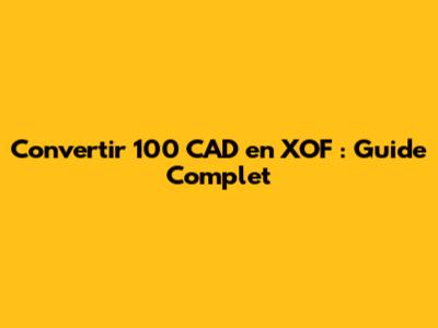 Convertir 100 CAD En XOF : Guide Complet