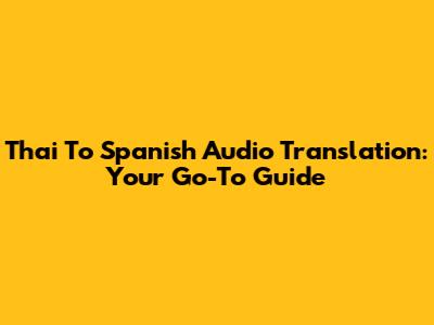 Thai To Spanish Audio Translation: Your Go-To Guide