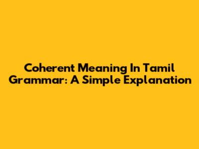 Coherent Meaning In Tamil Grammar: A Simple Explanation