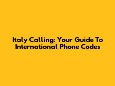 Italy Calling: Your Guide To International Phone Codes