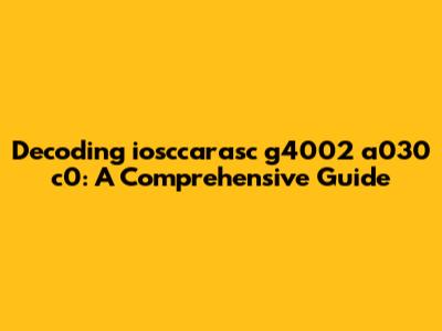 Alright, folks, let's dive deep into the mysterious world of "iosccarasc g4002 a030 c0." You might be scratching your heads, wondering what this alphanumeric string even means. Don't worry; we're here to break it down for you in a way that's easy to understand. Whether you've stumbled upon this code while troubleshooting an issue, trying to identify a component, or just out of sheer curiosity, this guide is designed to provide clarity and insights. Let’s get started and unravel this enigma together!