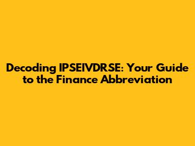 Hey finance enthusiasts and curious minds! Ever stumbled upon the acronym IPSEIVDRSE in the financial world and wondered what the heck it means? Well, you're in the right place! We're diving deep into this abbreviation, breaking down its meaning, and exploring its significance in the realm of finance. So, buckle up, grab your favorite beverage, and let's get started!