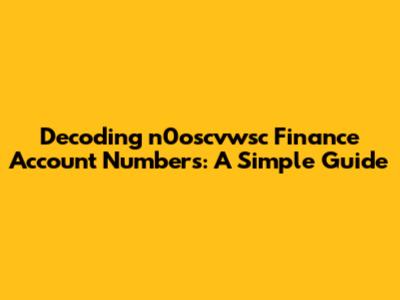 Have you ever stumbled upon a seemingly cryptic string of characters and wondered what it meant? Well, today we're diving deep into the world of n0oscvwsc finance account numbers. Understanding these numbers is crucial for managing your finances effectively, whether you're dealing with personal accounts or handling business transactions. This guide aims to demystify these account numbers, providing you with the knowledge to navigate them confidently. Finance account numbers, like the n0oscvwsc variant, serve as unique identifiers for your financial accounts. They are essential for various financial activities, including making payments, receiving funds, tracking transactions, and ensuring the security of your financial data. Without a clear understanding of these numbers, you might find yourself lost in a sea of financial jargon. The purpose of this guide is to break down the components of n0oscvwsc finance account numbers, explain their significance, and offer practical tips on how to manage them effectively. We'll cover everything from the basic structure of these numbers to common mistakes to avoid, ensuring you have a solid grasp of the subject matter. So, whether you're a seasoned finance professional or just starting to manage your own accounts, this guide is designed to provide valuable insights and actionable advice.