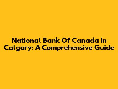 National Bank Of Canada In Calgary: A Comprehensive Guide