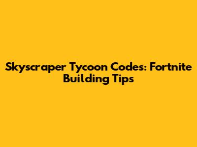Skyscraper Tycoon Codes: Fortnite Building Tips