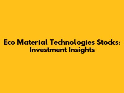 Eco Material Technologies Stocks: Investment Insights