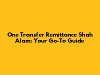 Hey guys! Are you looking for a reliable way to send money to your loved ones back home? Or maybe you need to make some international payments? If you're in Shah Alam, you've probably heard about One Transfer. It's becoming increasingly popular for its convenience, speed, and security. Let’s dive deep into what makes One Transfer in Shah Alam a top choice for your remittance needs.