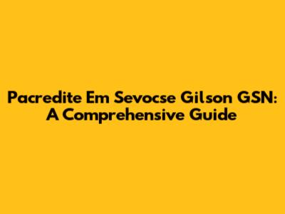 Pacredite Em Sevocse Gilson GSN: A Comprehensive Guide