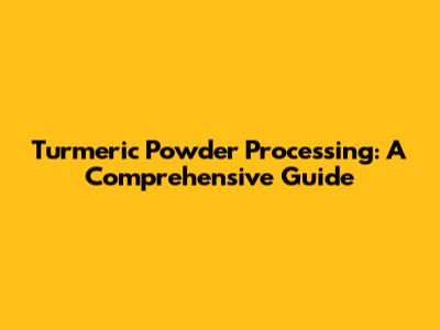 Turmeric Powder Processing: A Comprehensive Guide