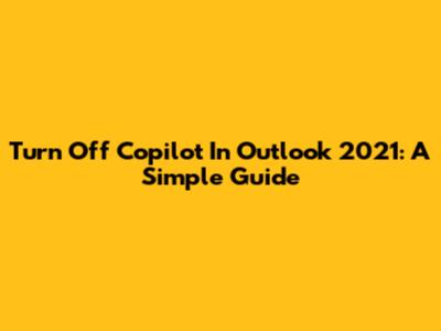 Turn Off Copilot In Outlook 2021: A Simple Guide