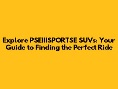 Hey car enthusiasts! Are you guys ready to dive into the exciting world of PSEIIISPORTSE SUVs? Finding the perfect SUV can be quite a journey, but don't worry, I'm here to help you navigate the landscape and discover some awesome options available for sale. This guide is your ultimate companion, packed with insights, tips, and everything you need to know to make an informed decision. Let's get started and explore what makes these vehicles so popular, where to find them, and what to consider before making a purchase. So, buckle up, and let's go!