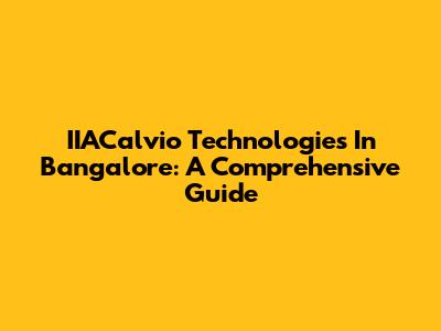 IIACalvio Technologies In Bangalore: A Comprehensive Guide