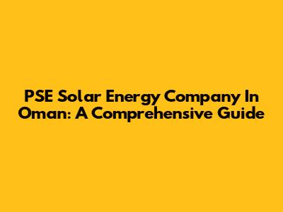 PSE Solar Energy Company In Oman: A Comprehensive Guide