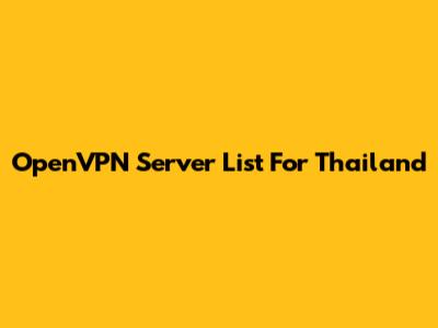 OpenVPN Server List For Thailand
