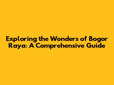 Unveiling the Charms of Bogor Raya: What Makes It Special?