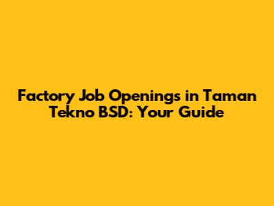 Where to Find Factory Job Openings in Taman Tekno BSD