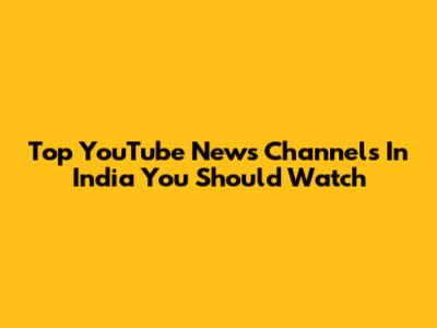 Top YouTube News Channels In India You Should Watch