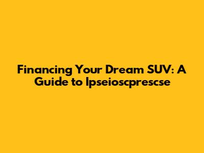 Hey everyone, let's talk about something exciting: financing your dream SUV! It's a big decision, and it can feel a bit overwhelming, but don't worry, I'm here to break it down and make it easier to understand, especially when it comes to the specifics of something like "ipseioscprescse owned SUV finance." So, grab a coffee (or your beverage of choice), and let's dive into the world of SUV financing, covering everything from understanding your budget to securing the best possible rates. We will make it easy to understand the steps involved in securing financing for your dream SUV, and we'll touch on the unique aspects of Ipseioscprescse-owned SUV financing, if applicable, although specifics can vary widely based on the actual financial institutions and programs involved. This guide is your starting point, designed to empower you with the knowledge you need to make informed decisions and drive away in the SUV you've always wanted!