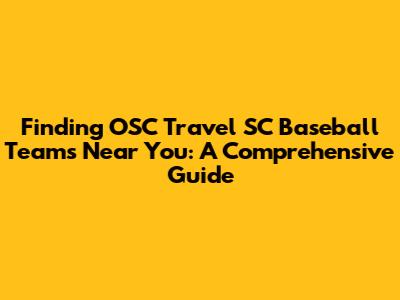 Hey baseball fanatics! Looking for an OSC Travel SC baseball team near you? You've come to the right place! This guide is packed with info to help you locate teams, understand what they offer, and get your young player involved. Whether you're a parent, a potential player, or just a die-hard fan, this is your go-to resource. We'll dive deep into finding these teams, understanding their structure, and the benefits of joining a travel baseball program. Let's get started, shall we?