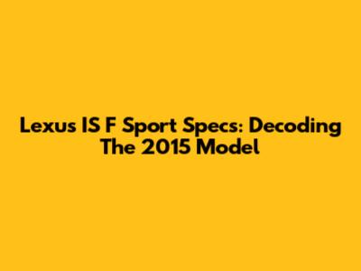 Lexus IS F Sport Specs: Decoding The 2015 Model