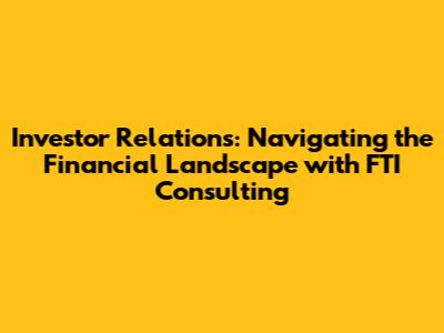 In conclusion, investor relations is a critical function for any publicly traded company. FTI Consulting offers comprehensive solutions to help companies navigate the complexities of investor relations, build trust with investors, and drive long-term value creation. Their expertise, experience, and network make them a valuable partner for companies seeking to enhance their investor relations efforts and achieve their strategic objectives.