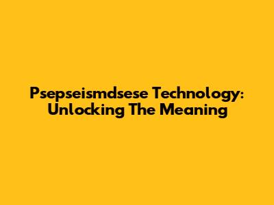 Psepseismdsese Technology: Unlocking The Meaning