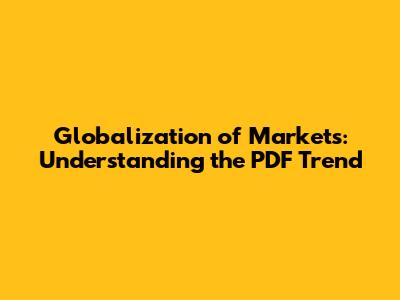Globalization of markets refers to the increasing interconnectedness of national economies and the growing integration of trade, finance, people, and ideas across international borders. Essentially, it's the shift from seeing the world as a collection of isolated markets to viewing it as one big, interconnected global marketplace. Think of it like this: once upon a time, businesses primarily focused on selling their products or services within their own country. Now, thanks to advancements in technology, transportation, and communication, they can reach customers all over the globe. This means that a company in the United States can sell its products in China, a company in Germany can source its materials from Brazil, and a company in Japan can offer its services in Australia. The driving forces behind globalization of markets include reduced trade barriers, technological advancements, and increased consumer demand for diverse products and services. The internet, in particular, has played a pivotal role, enabling businesses to connect with customers and suppliers worldwide. The implications of globalization of markets are far-reaching, impacting everything from economic growth and job creation to cultural exchange and political relations. While it offers numerous opportunities for businesses and consumers, it also presents challenges such as increased competition, income inequality, and environmental concerns. It's like that double-edged sword – awesome potential, but you gotta wield it wisely! Now, how does a PDF fit into all of this? Stay with me; we're getting there!