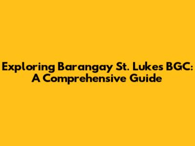 Exploring Barangay St. Luke's BGC: A Comprehensive Guide