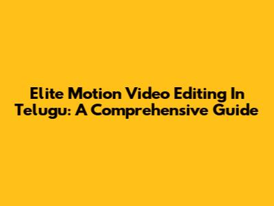 Elite Motion Video Editing In Telugu: A Comprehensive Guide